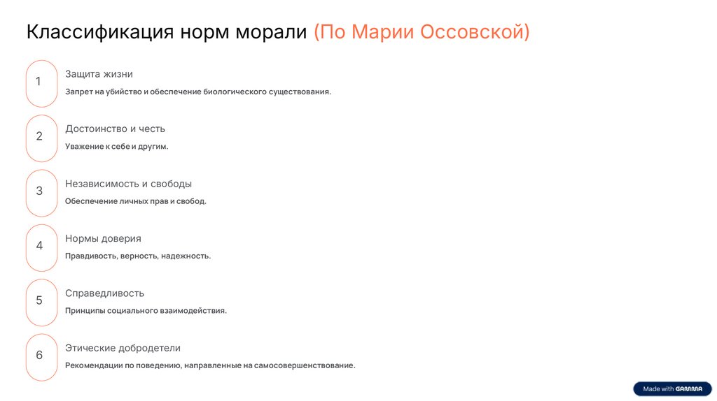 Классификация норм морали (По Марии Оссовской)1