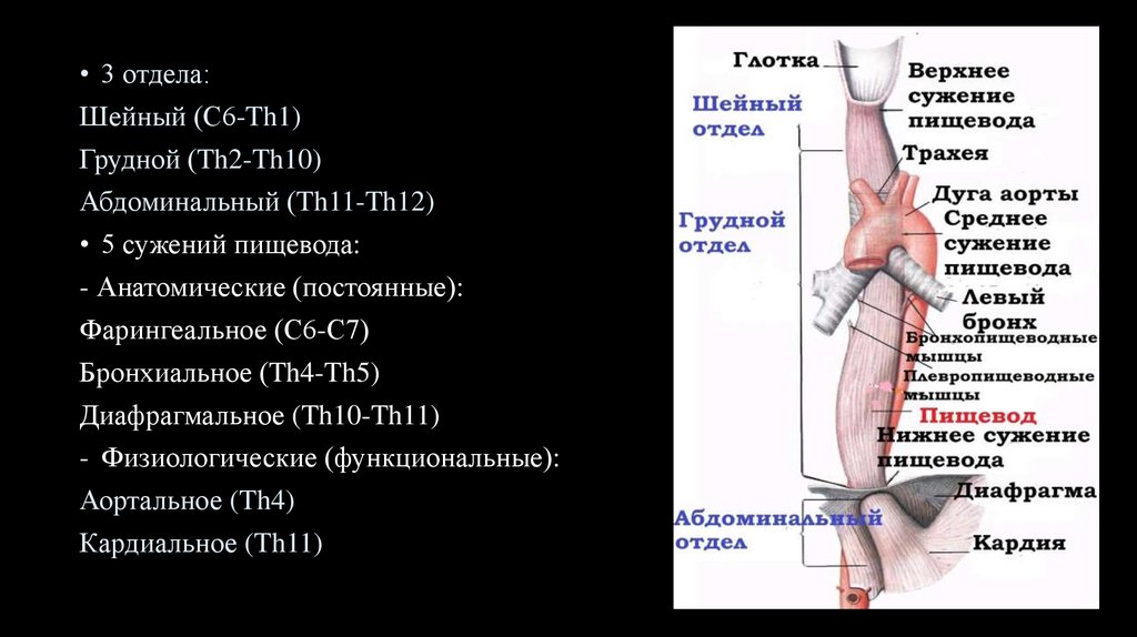 • Длина пищевода 23 — 25 см.