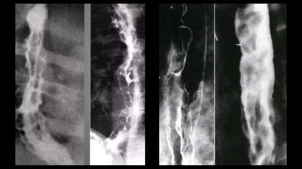 • 1. Рентгенография(дивертикула пищевода, варикозное расширение вен, бронхопищеводный свищ,