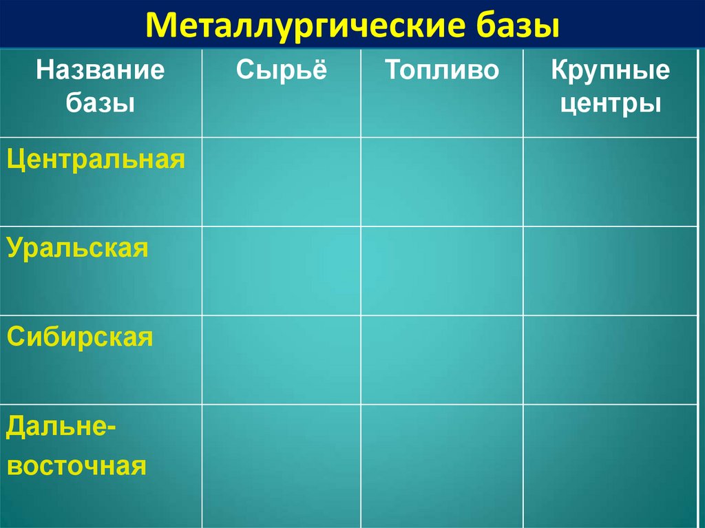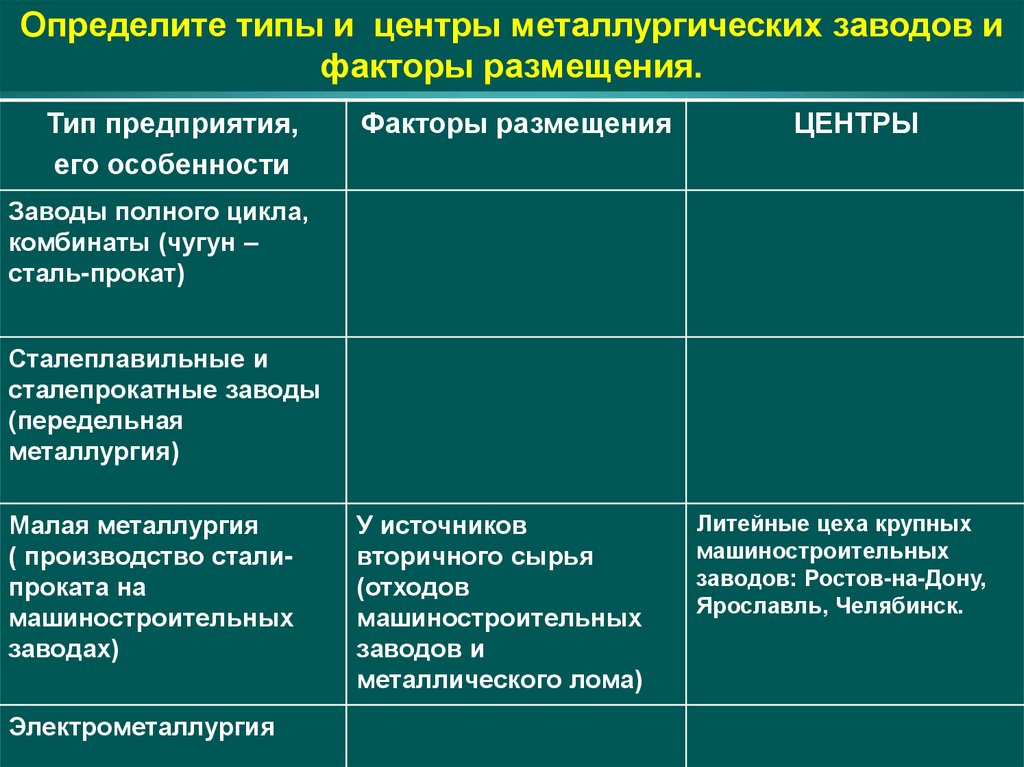 Определите типы и центры металлургических заводов ифакторы размещения.