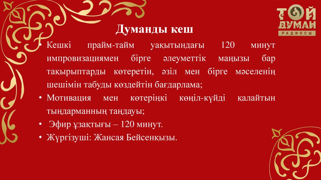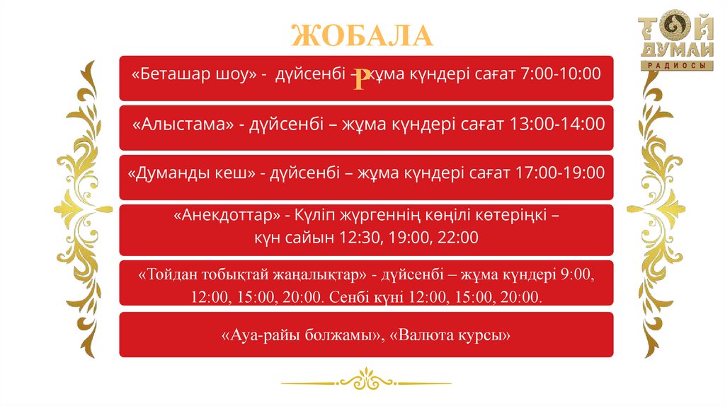 ЖОБАЛА«Беташар шоу» - дүйсенбі – жұма күндері сағат 7:00-10:00