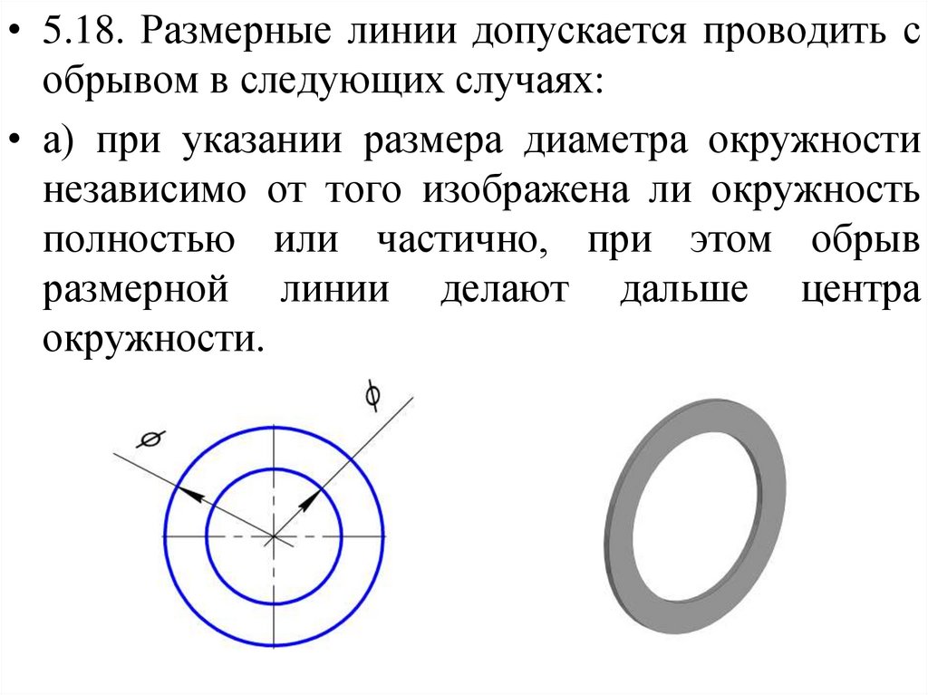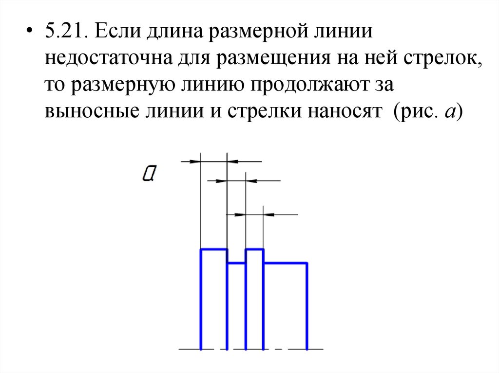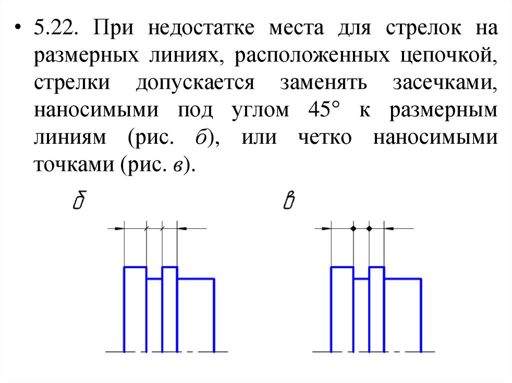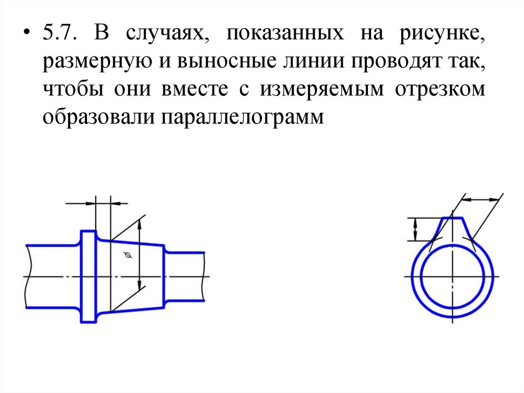 • 5.7. В случаях, показанных на рисунке,размерную и выносные линии проводят так,