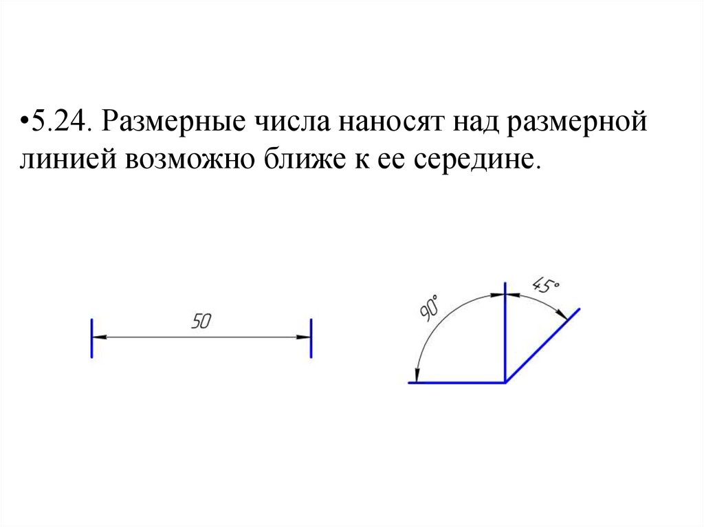 • 5.3. При нанесении размера угла размернуюлинию проводят в виде дуги с центром в его