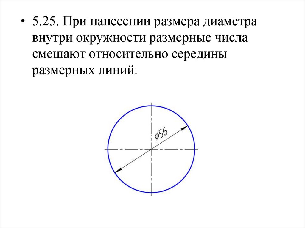 • 5.38. При указании размера диаметра (во всехслучаях) перед размерным числом наносят знак