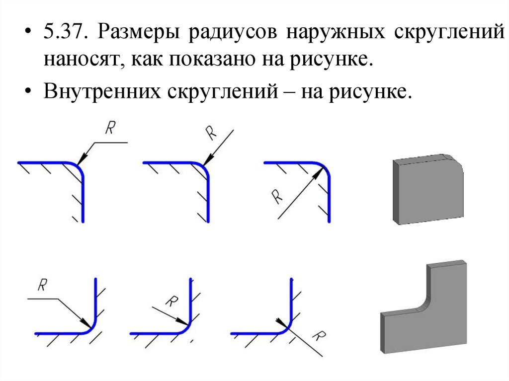 • 5.37. Размеры радиусов наружных скругленийнаносят, как показано на рисунке.