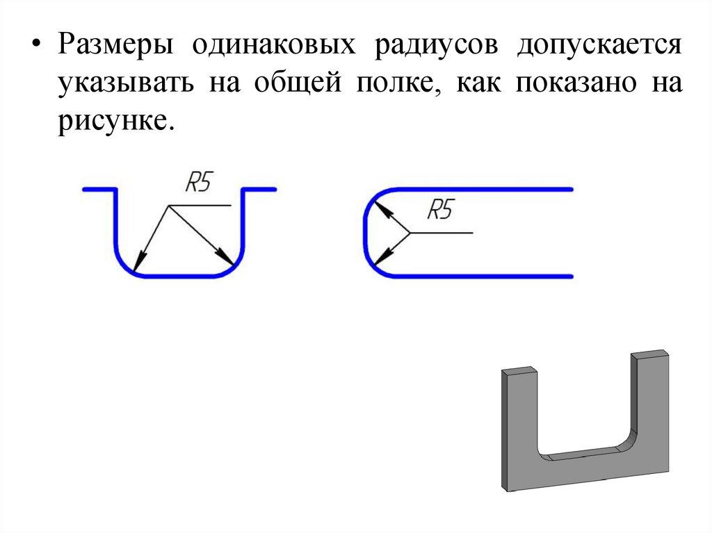 • Размеры одинаковых радиусов допускаетсяуказывать на общей полке, как показано на