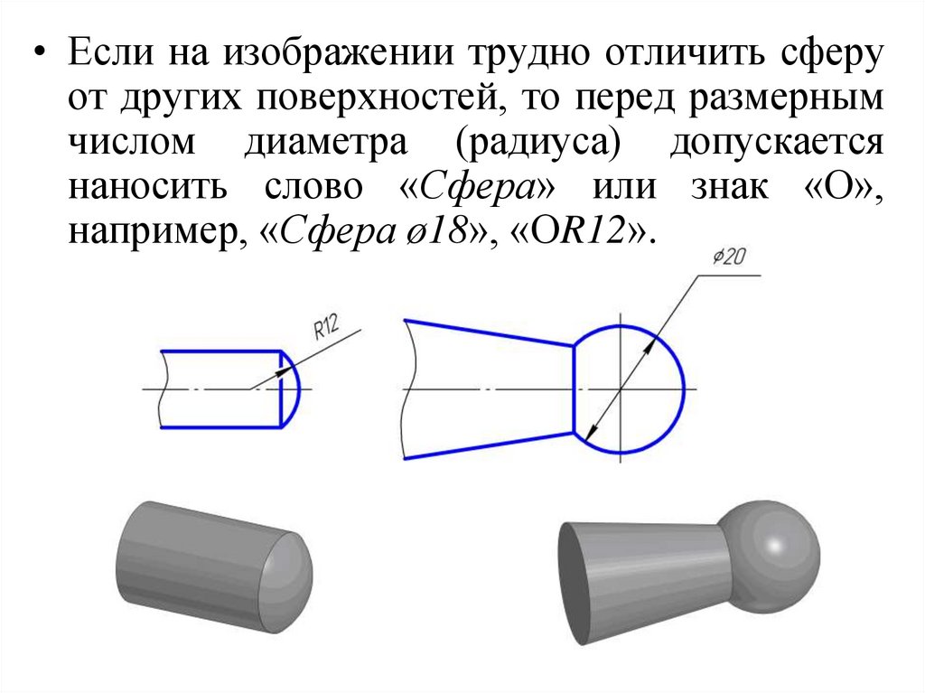 • Если на изображении трудно отличить сферуот других поверхностей, то перед размерным