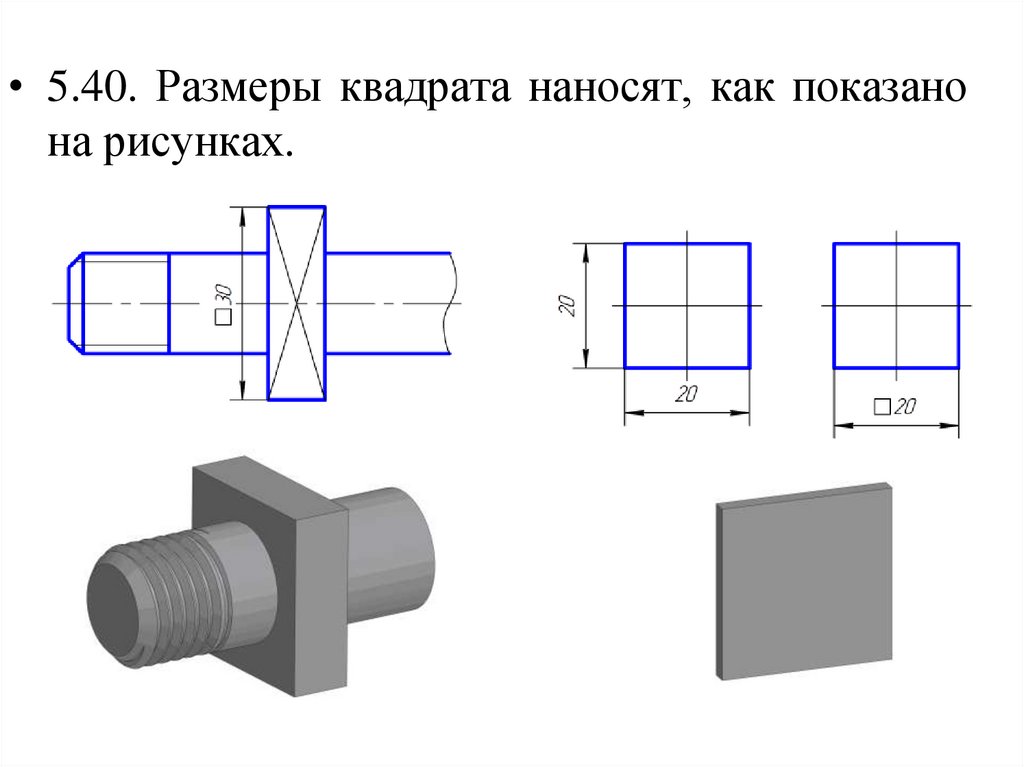 • 5.40. Размеры квадрата наносят, как показанона рисунках.