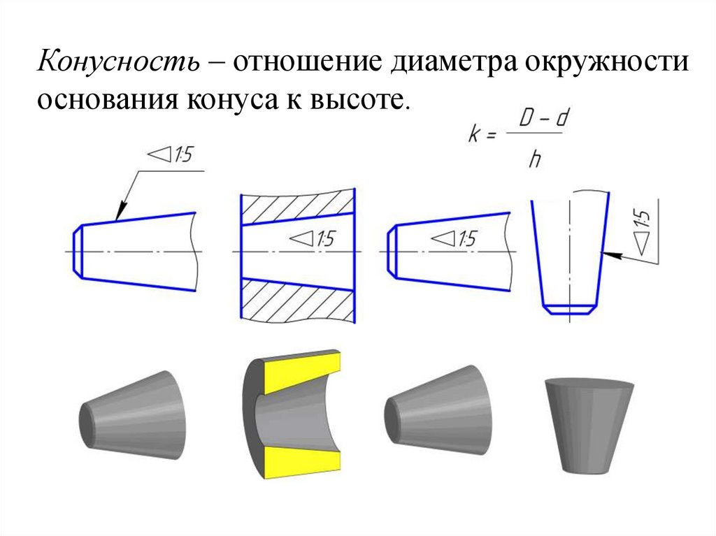 Конусность – отношение диаметра окружностиоснования конуса к высоте.