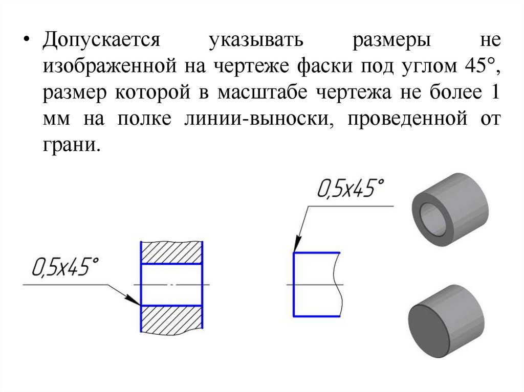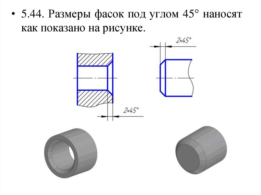 • 5.44. Размеры фасок под углом 45° наносяткак показано на рисунке.
