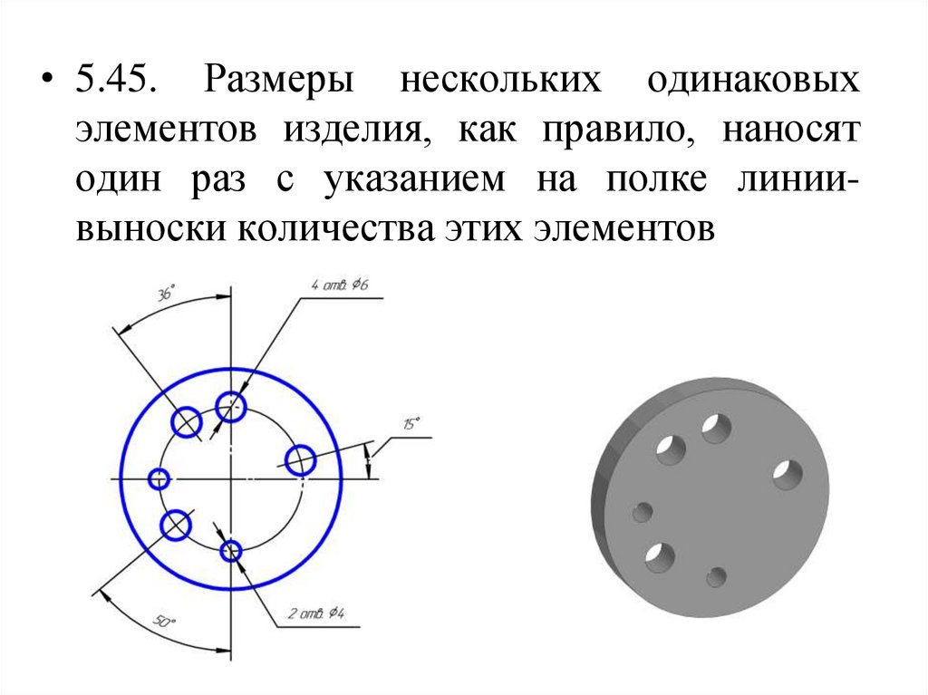 • 5.45. Размеры нескольких одинаковыхэлементов изделия, как правило, наносят