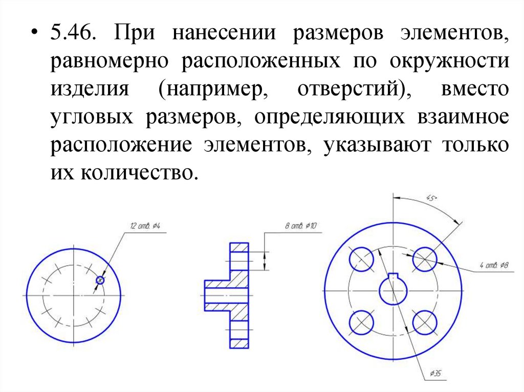 • 5.46. При нанесении размеров элементов,равномерно расположенных по окружности