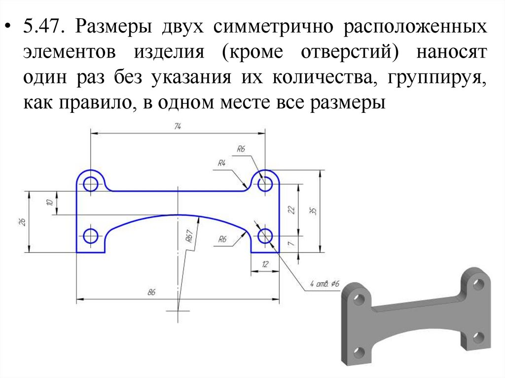 • 5.47. Размеры двух симметрично расположенныхэлементов изделия (кроме отверстий) наносят