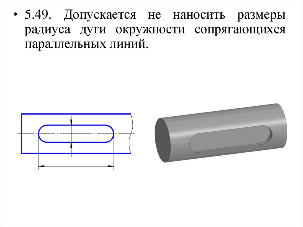 • 5.49. Допускается не наносить размерырадиуса дуги окружности сопрягающихся
