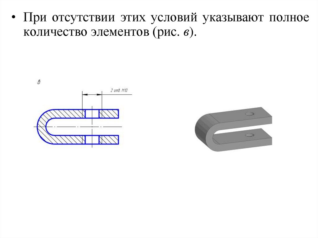 • При отсутствии этих условий указывают полноеколичество элементов (рис. в).
