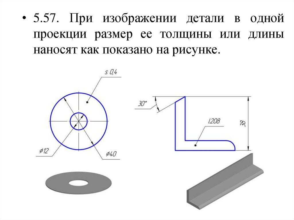 • 5.57. При изображении детали в однойпроекции размер ее толщины или длины
