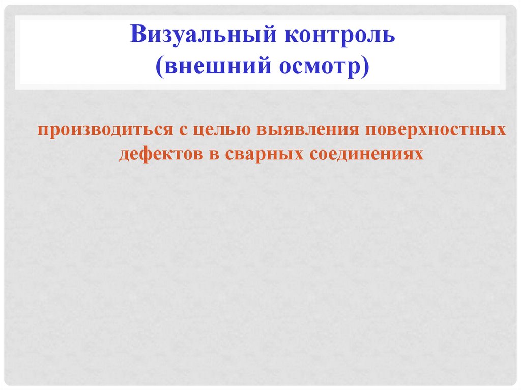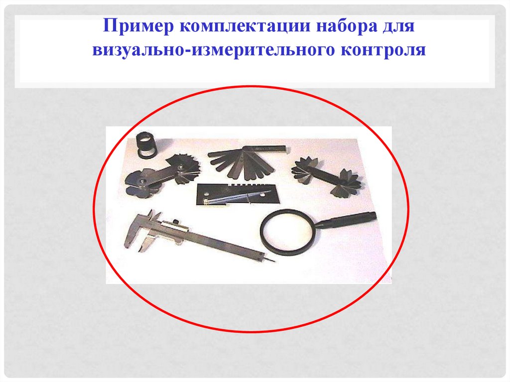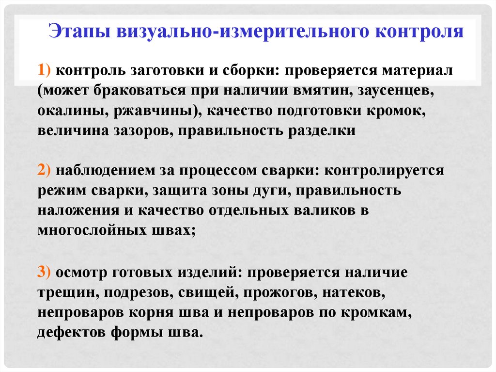 Этапы визуально-измерительного контроля1) контроль заготовки и сборки: проверяется материал