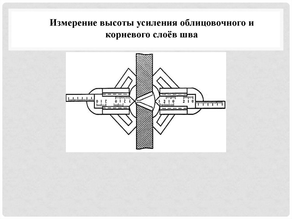Измерение высоты усиления облицовочного икорневого слоёв шва