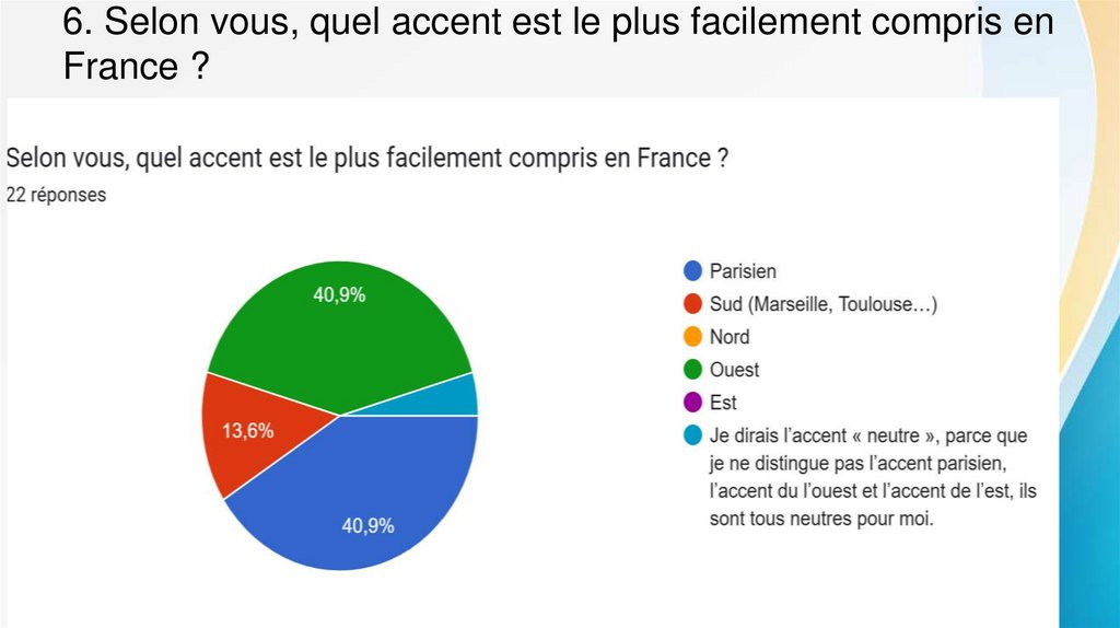 6. Selon vous, quel accent est le plus facilement compris enFrance ?
