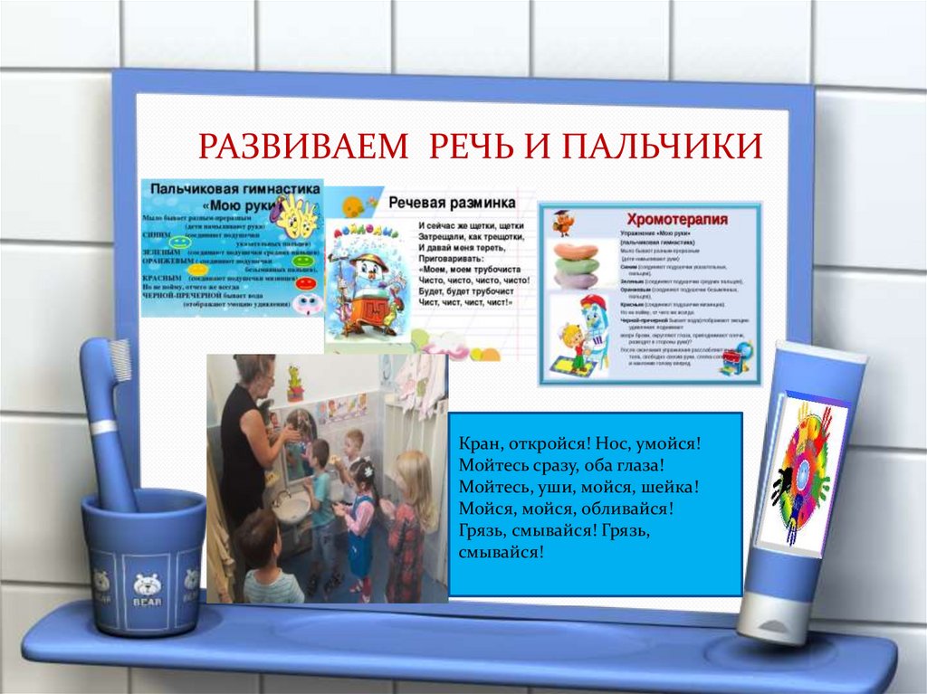 РАЗВИВАЕМ РЕЧЬ И ПАЛЬЧИКИКран, откройся! Нос, умойся!