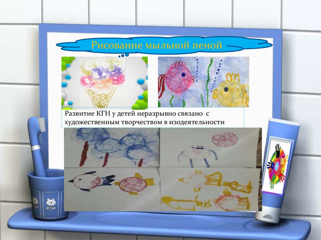 Рисование мыльной пенойРазвитие КГН у детей неразрывно связано с