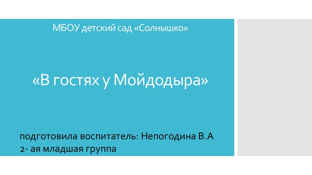 1. МБОУ детский сад «Солнышко» «В гостях у Мойдодыра»