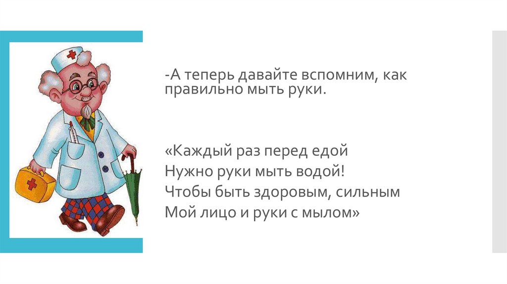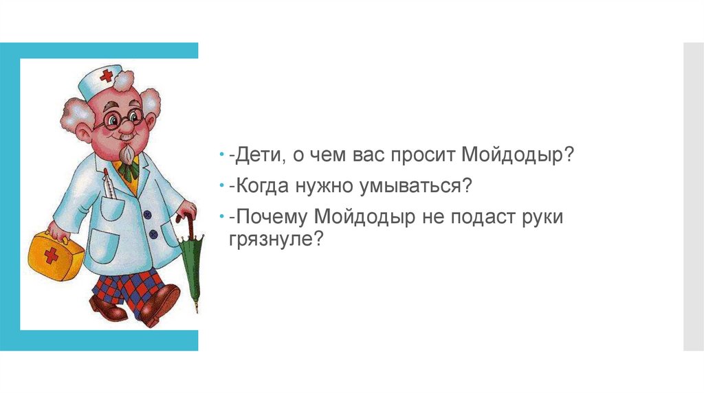 -Дети, о чем вас просит Мойдодыр?-Когда нужно умываться?