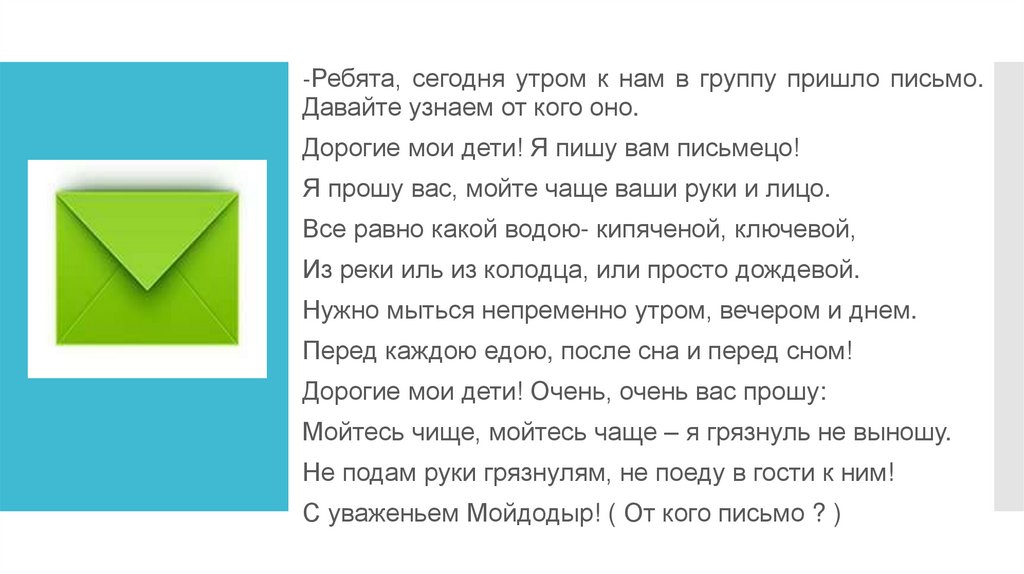 С уваженьем Мойдодыр! ( От кого письмо ? )