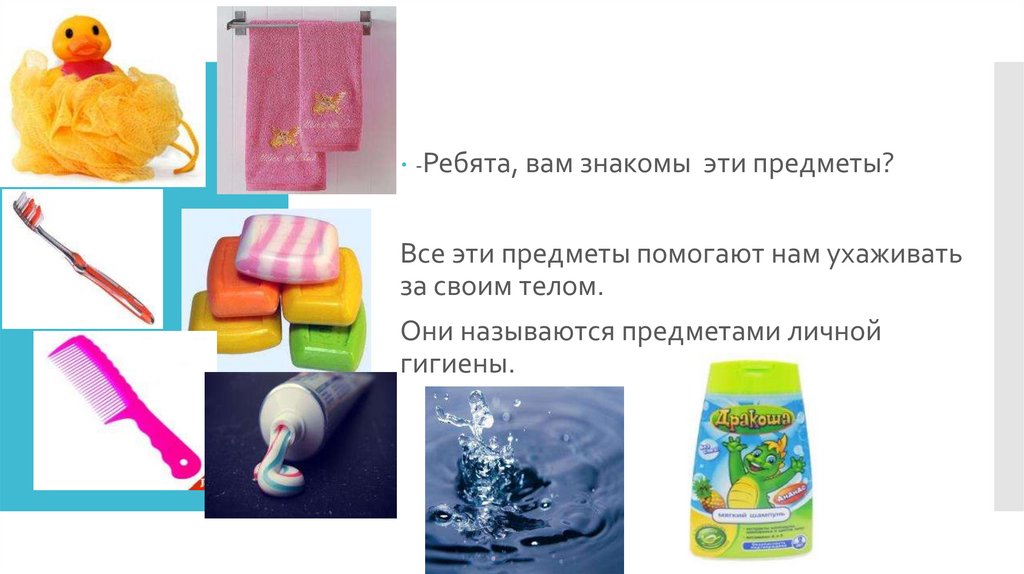 -Ребята, вам знакомы эти предметы?Все эти предметы помогают нам ухаживать