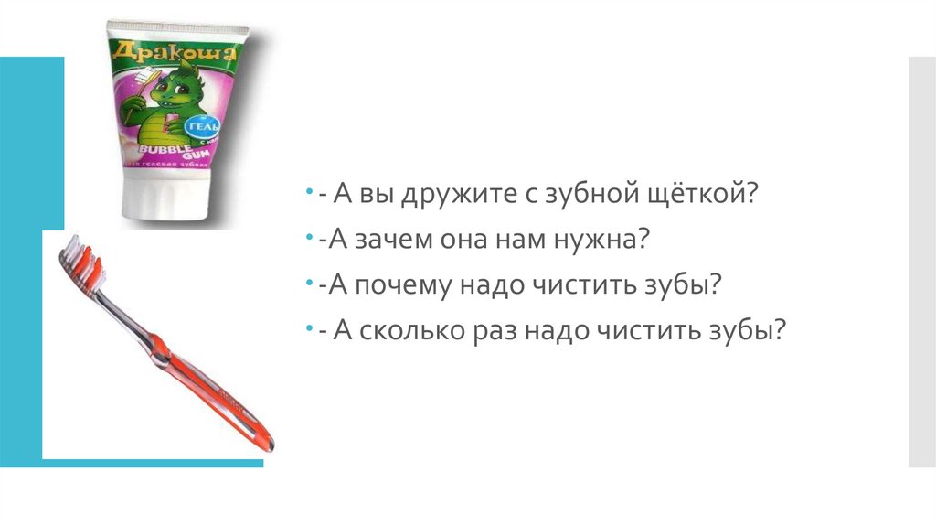 - А вы дружите с зубной щёткой?-А зачем она нам нужна?