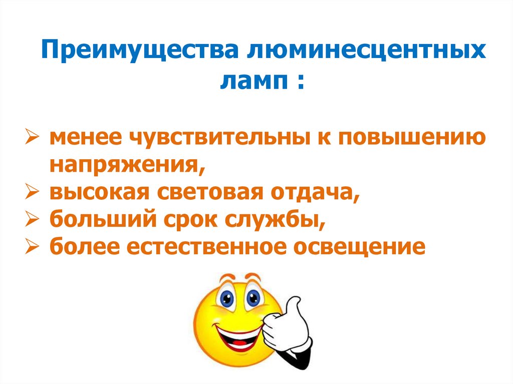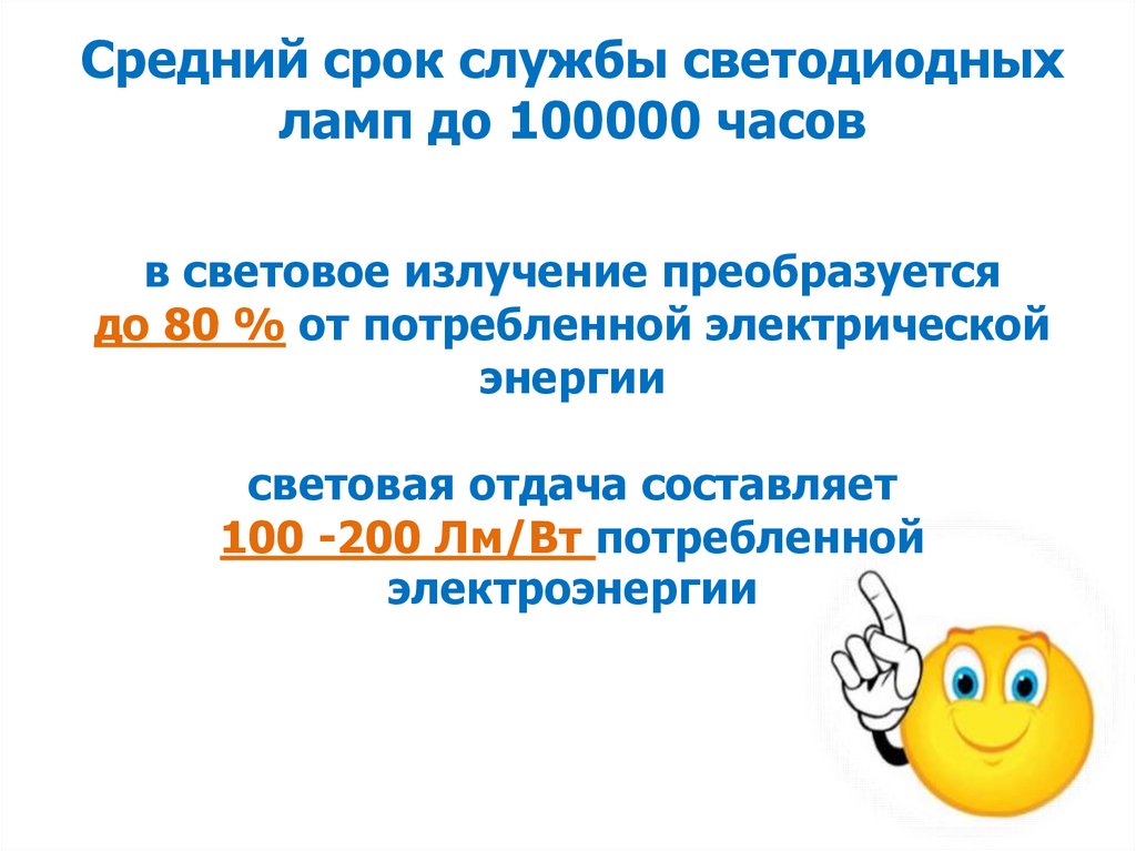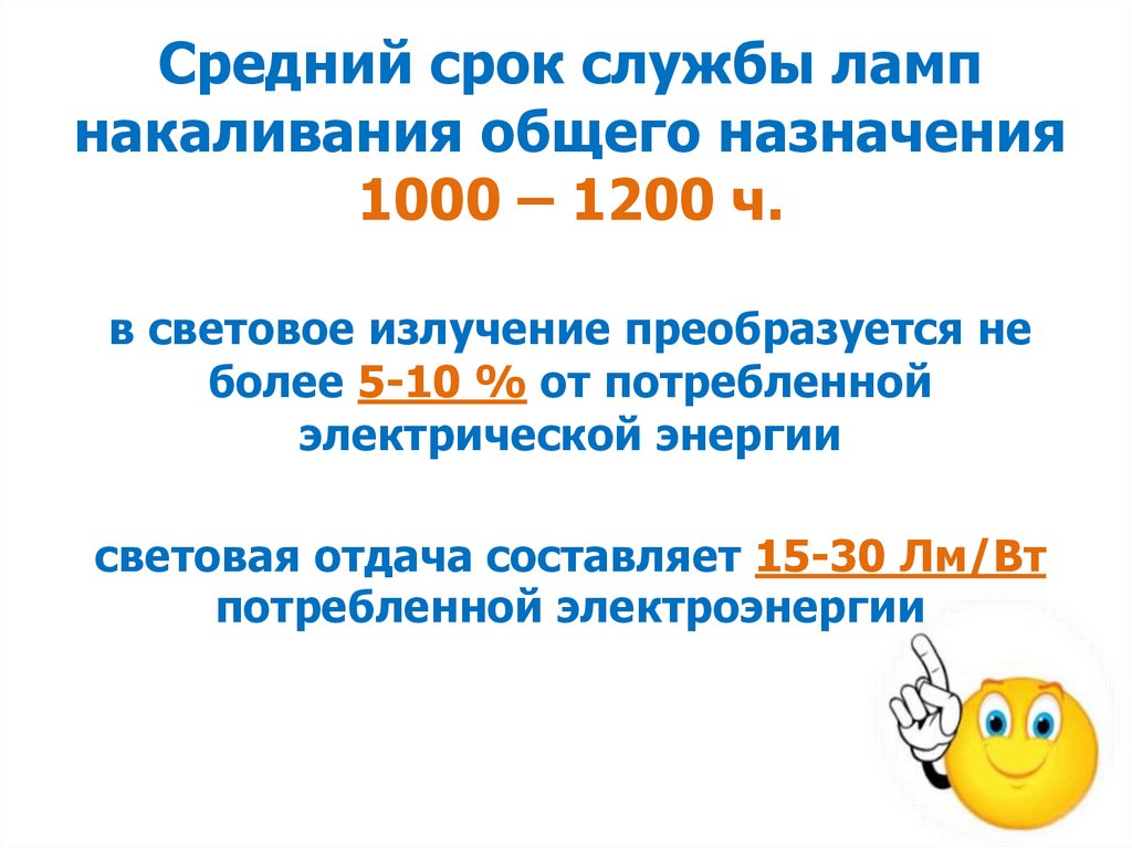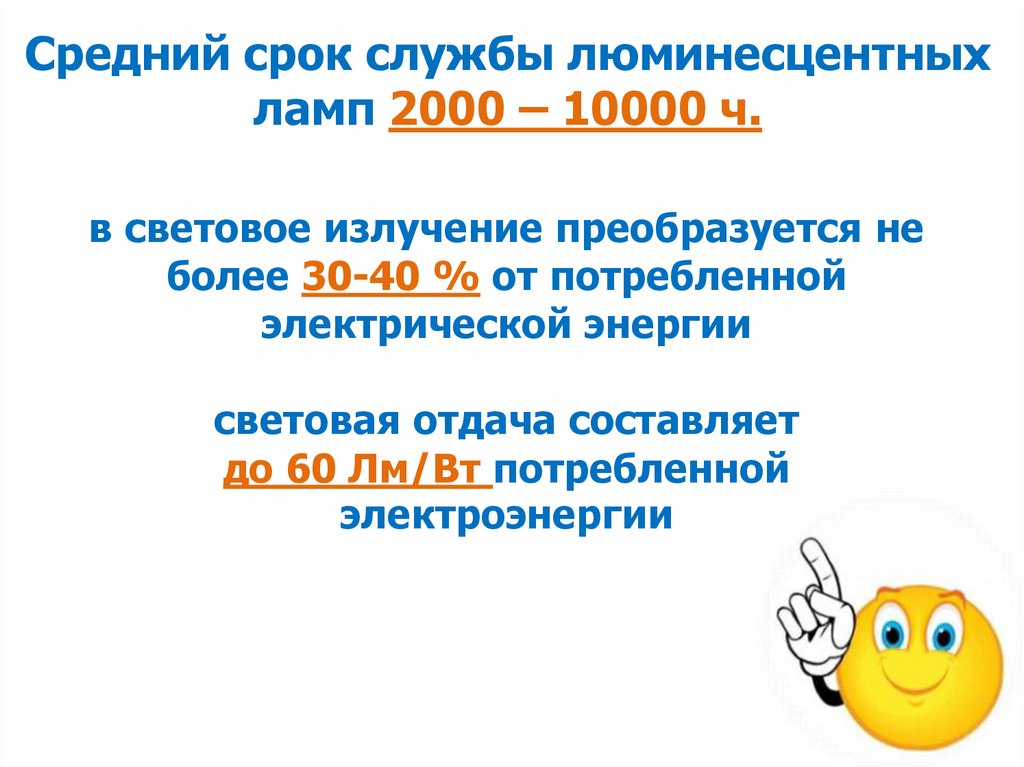 Средний срок службы люминесцентныхламп 2000 – 10000 ч.