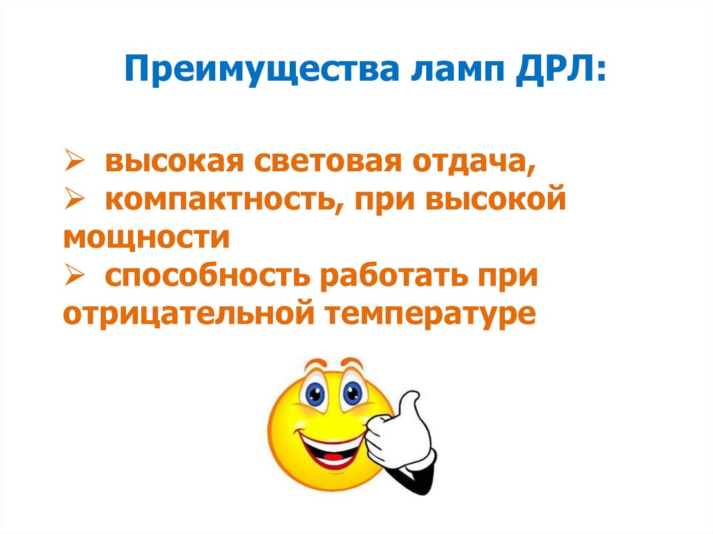 Преимущества ламп ДРЛ:высокая световая отдача,