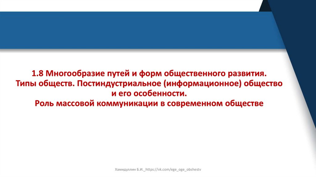 1. 1.8 Многообразие путей и форм общественного развития. Типы обществ. Постиндустриальное (информационное) общество и его