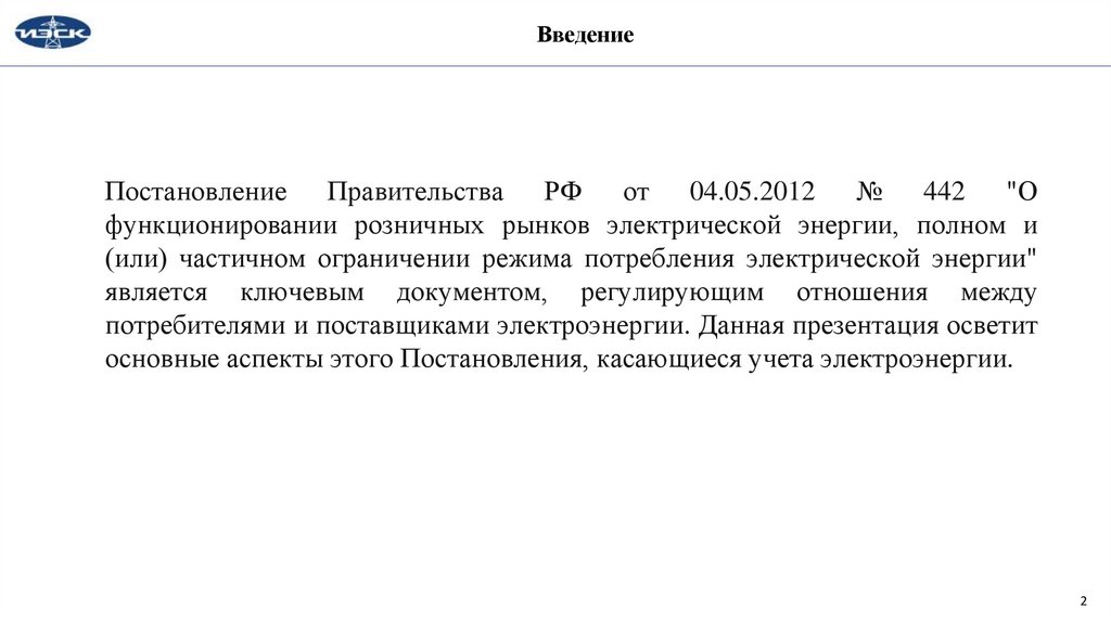 ВведениеПостановление Правительства РФ от 04.05.2012 № 442 "О
