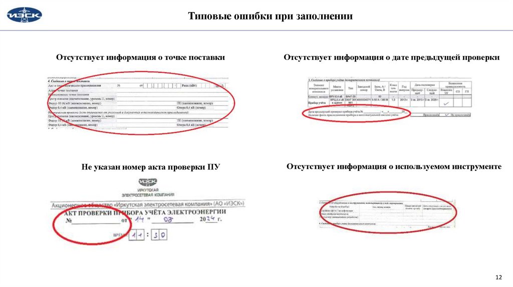 Типовые ошибки при заполненииОтсутствует информация о точке поставки
