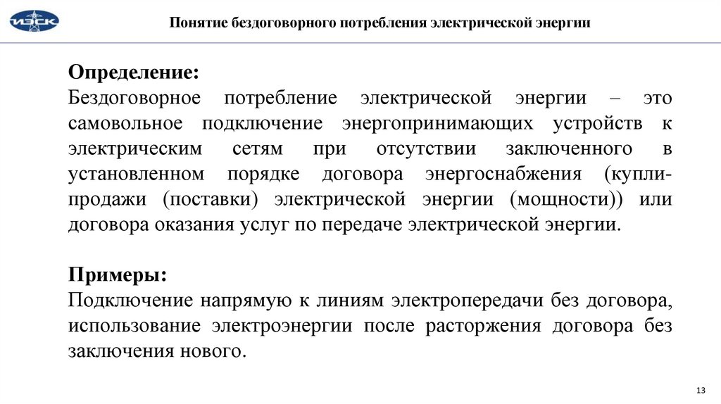 Понятие бездоговорного потребления электрической энергииОпределение: