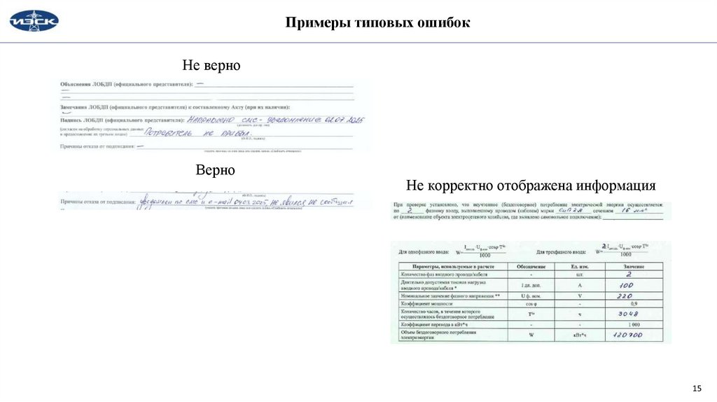 Примеры типовых ошибокНе верно