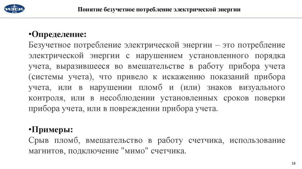 Понятие безучетное потребление электрической энергии•Определение: