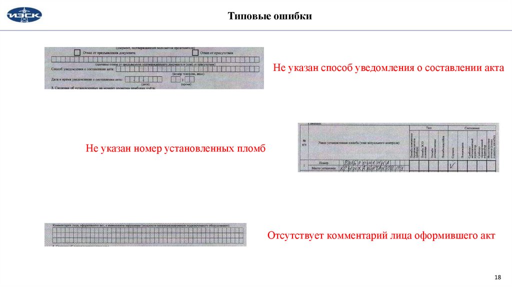Типовые ошибкиНе указан способ уведомления о составлении акта