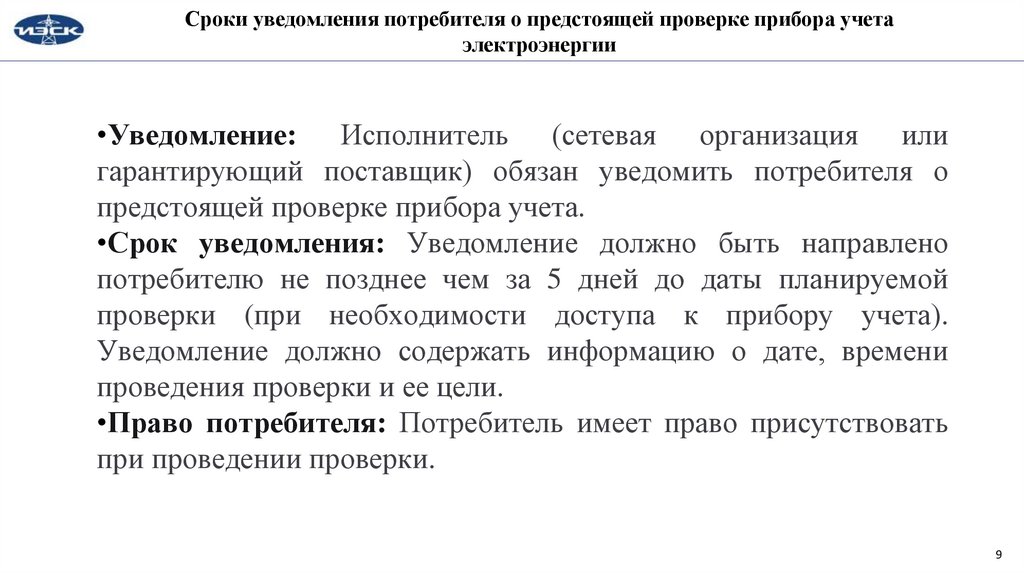 Сроки уведомления потребителя о предстоящей проверке прибора учетаэлектроэнергии