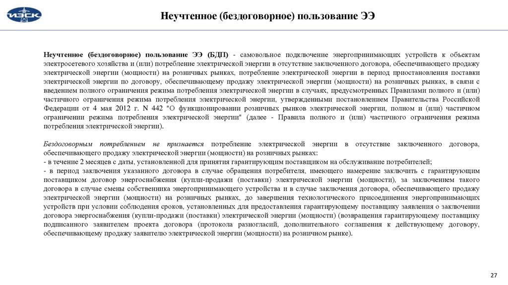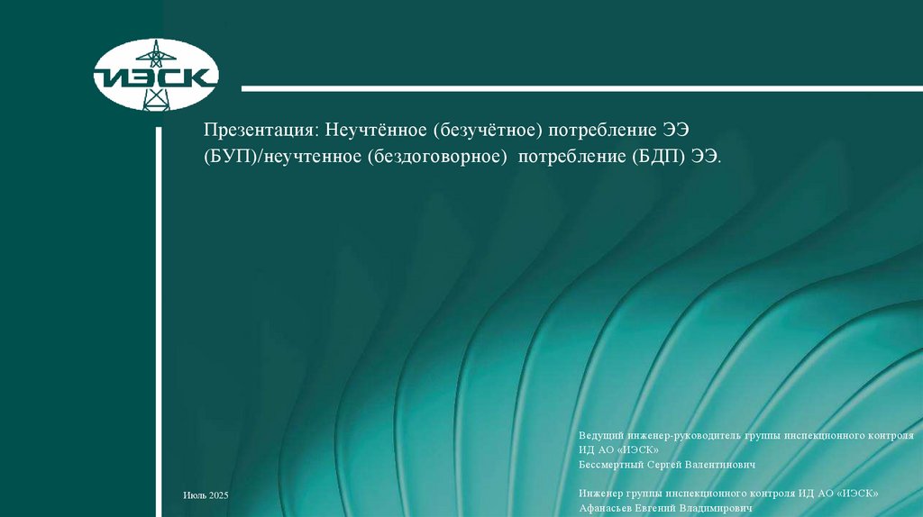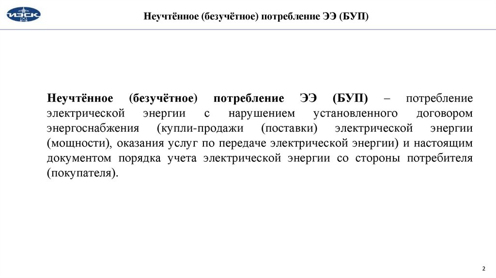 Презентация: Неучтённое (безучётное) потребление ЭЭ(БУП)/неучтенное (бездоговорное) потребление (БДП) ЭЭ.