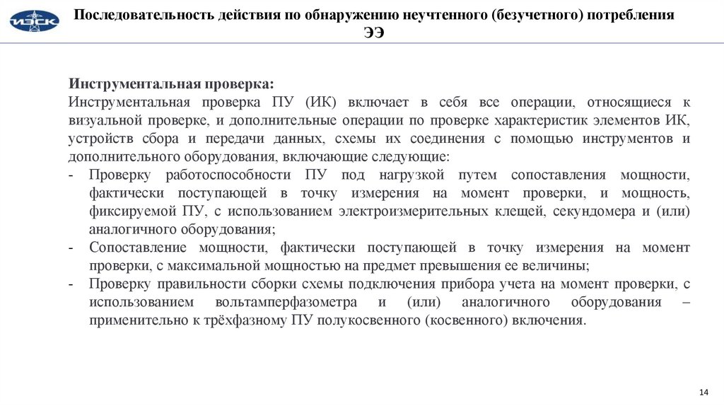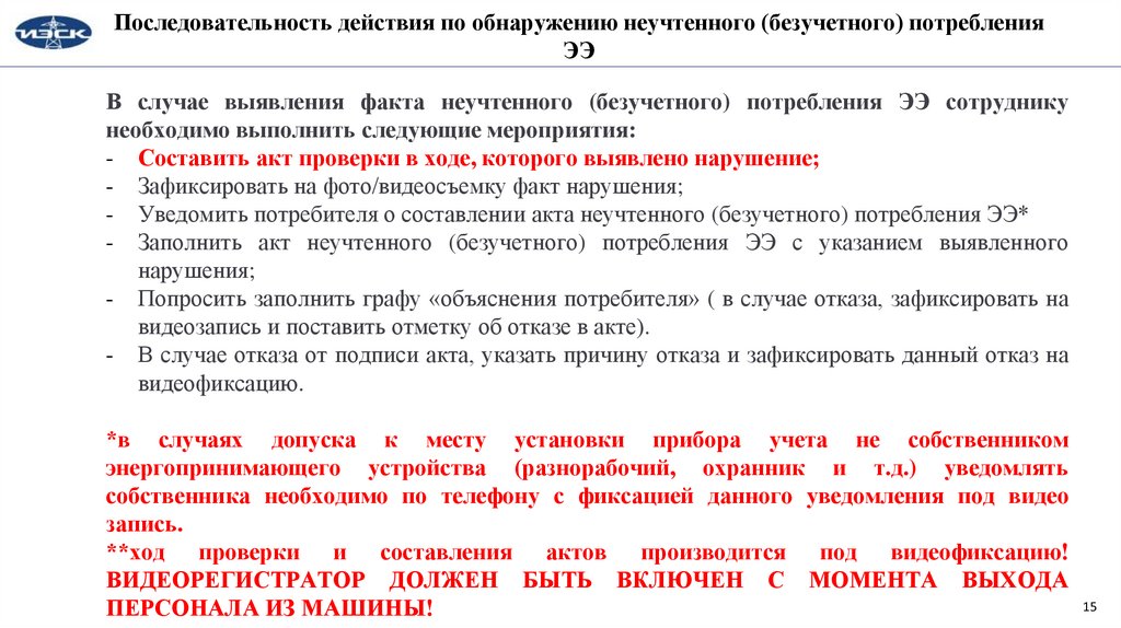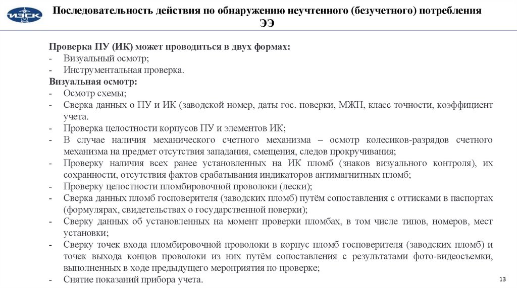 Последовательность действия по обнаружению неучтенного (безучетного) потребленияЭЭ