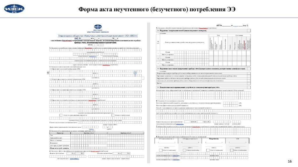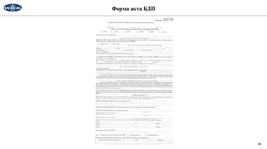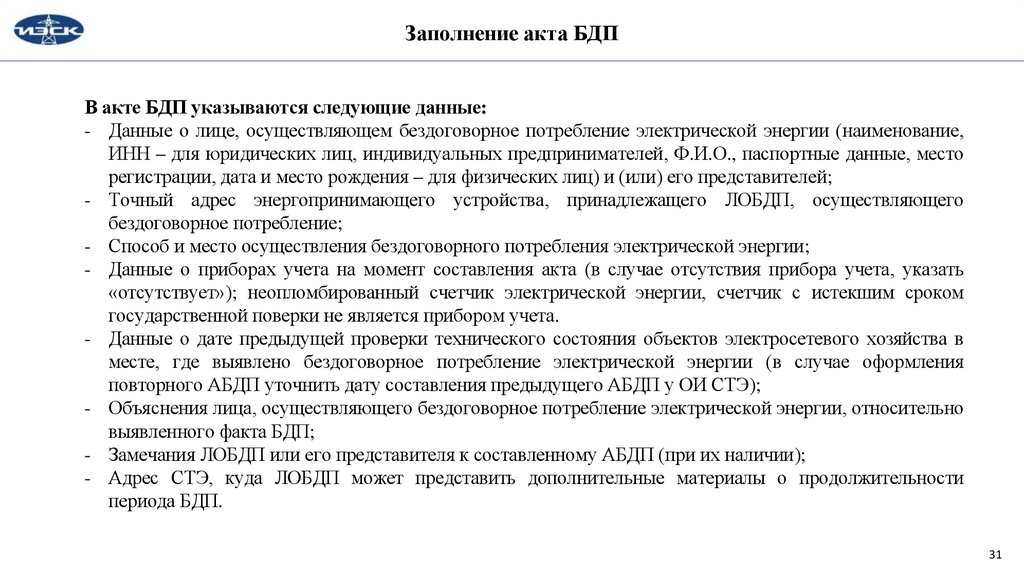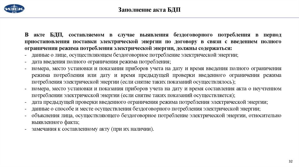 Заполнение акта БДПВ акте БДП, составляемом в случае выявления бездоговорного потребления в период