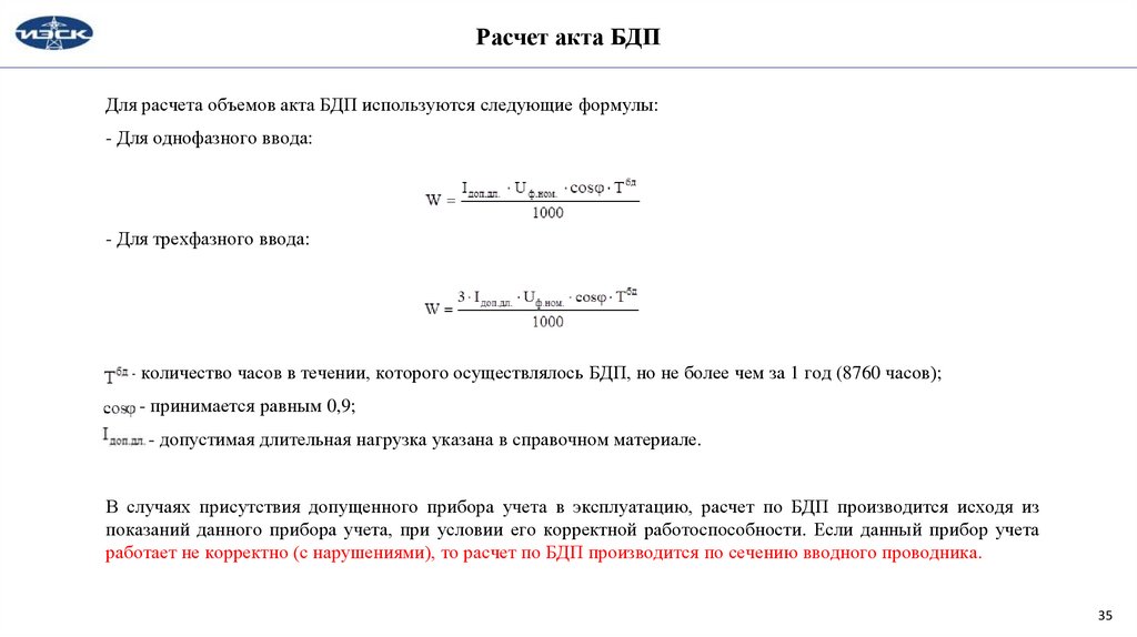 работает не корректно (с нарушениями), то расчет по БДП производится по сечению вводного проводника.