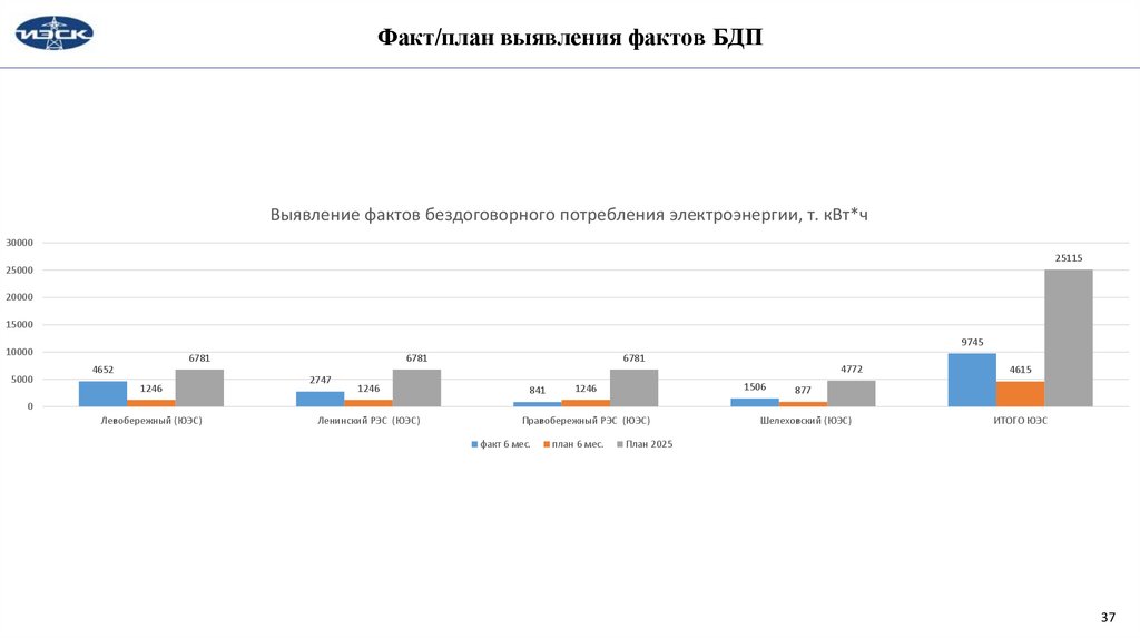 Факт/план выявления фактов БДПВыявление фактов бездоговорного потребления электроэнергии, т. кВт*ч
