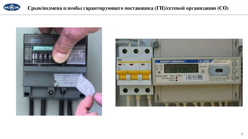 Срыв/подмена пломбы гарантирующего поставщика (ГП)/сетевой организации (СО)7
