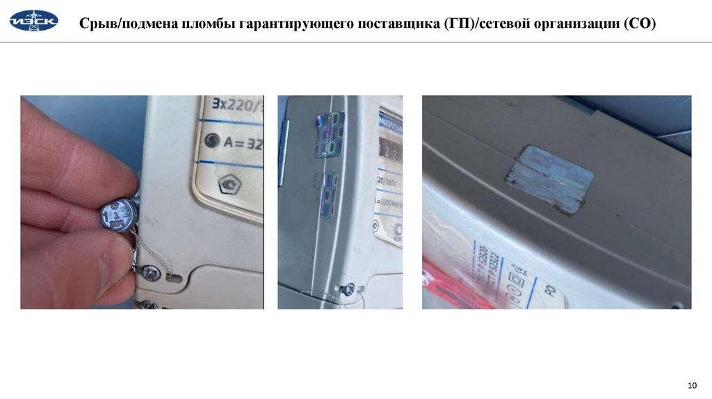 Срыв/подмена пломбы гарантирующего поставщика (ГП)/сетевой организации (СО)10