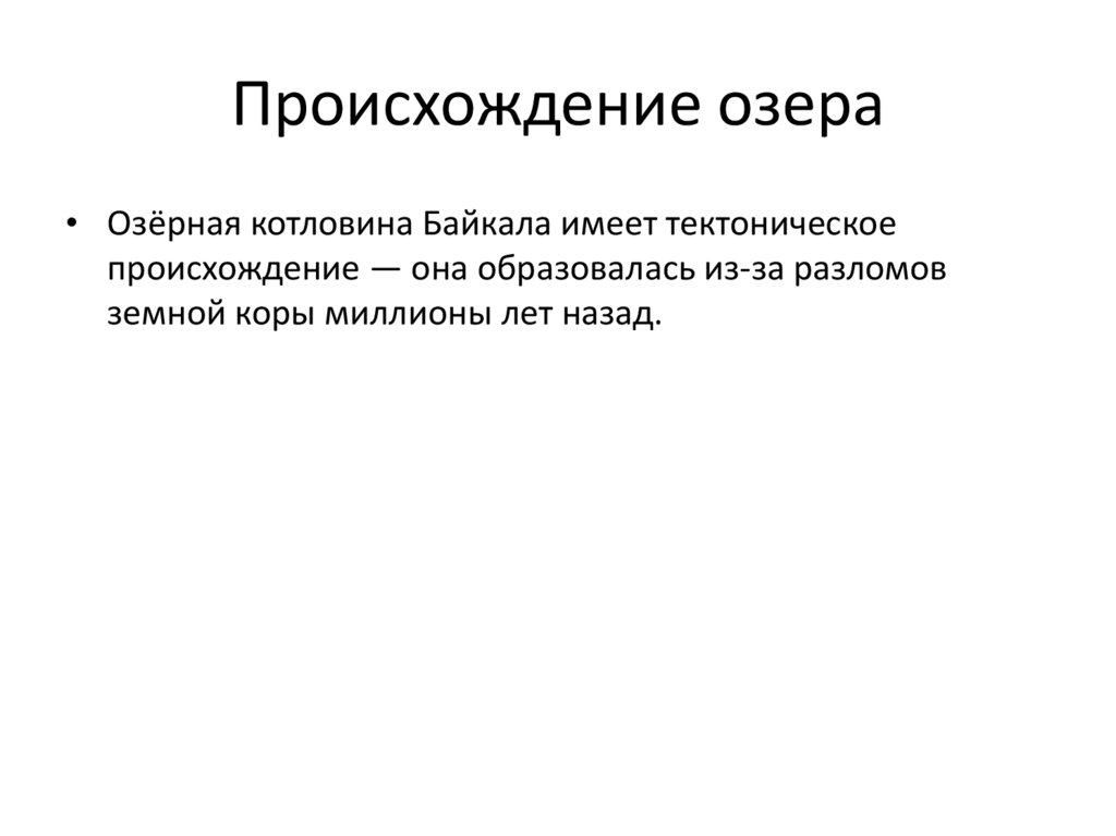 Происхождение озера• Озёрная котловина Байкала имеет тектоническое