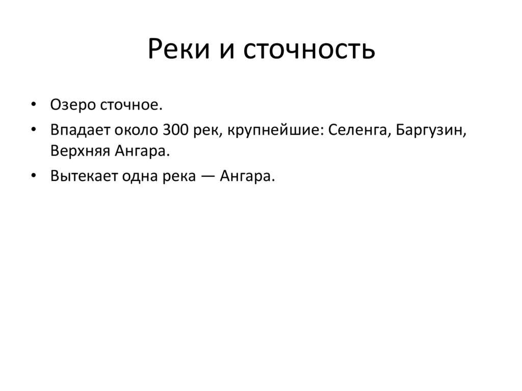 • Впадает около 300 рек, крупнейшие: Селенга, Баргузин,