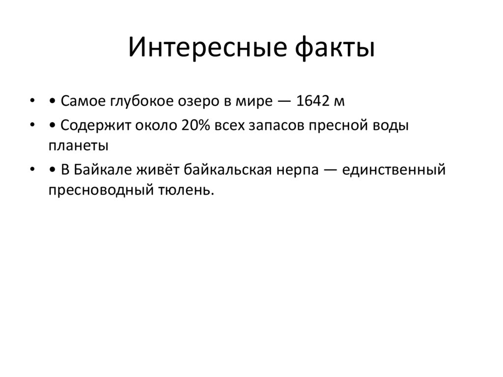 Интересные факты• • Самое глубокое озеро в мире — 1642 м